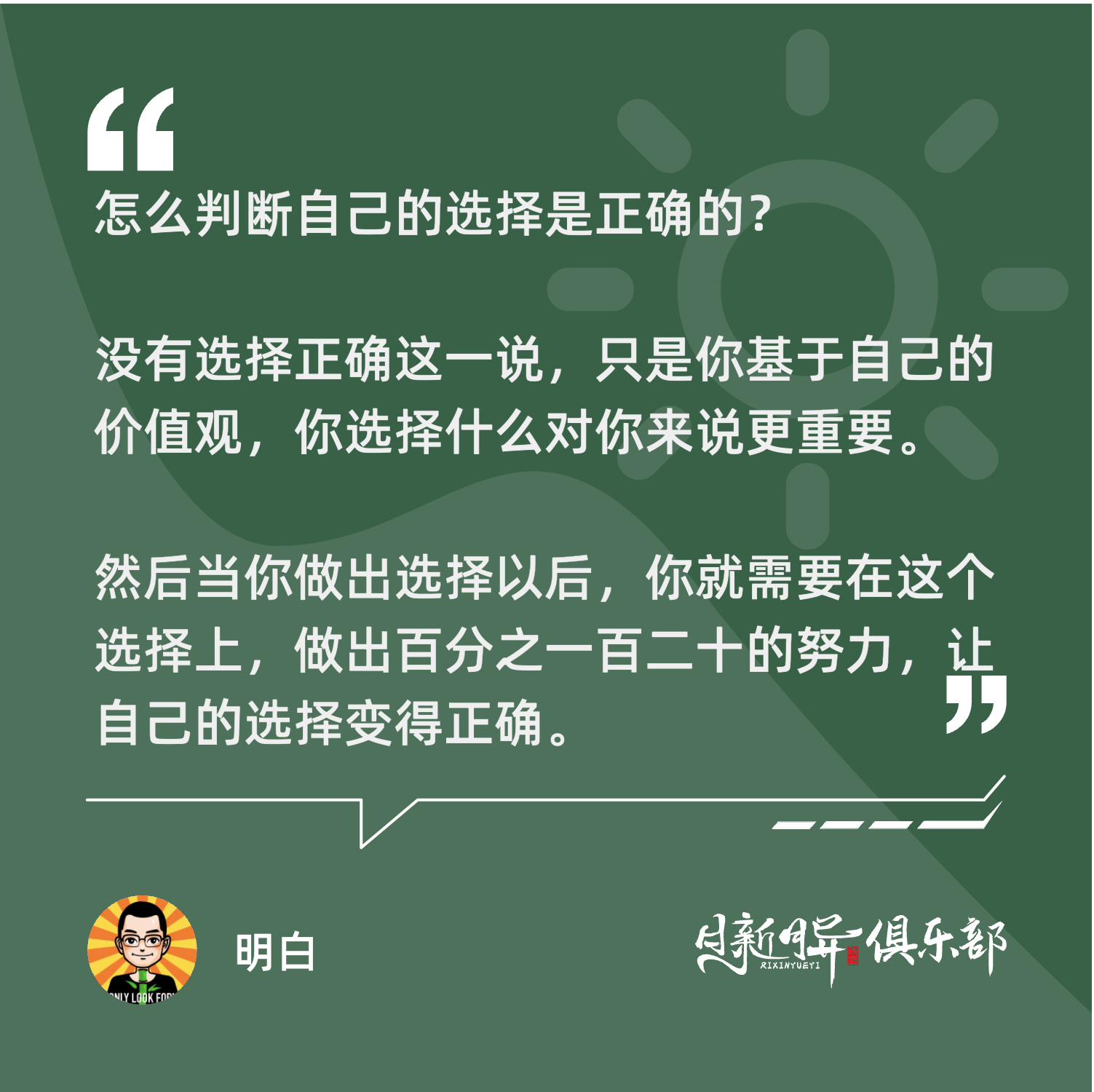 然后当你做出选择以后,你就需要在这个选择上,做出百分之一百二十的努力,让自己的选择变得正确。