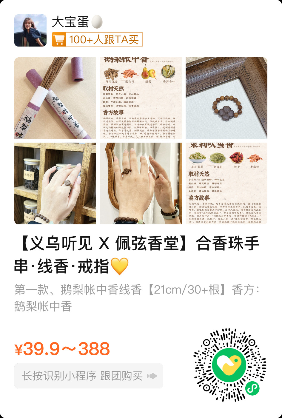 【义乌听见 X 佩弦香堂】合作款链接请跳转 https://ktt.pinduoduo.com/t/fT2URTN6xF