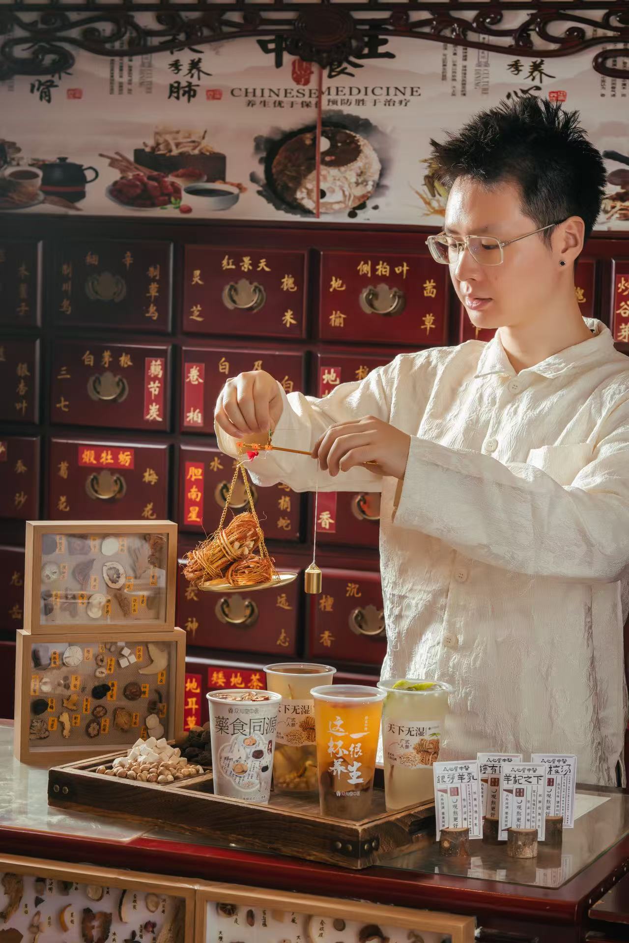 所以我们今天特别邀请到了一位来自深圳的90后中医奶茶创业者,他出生于三代中医家庭,在留学回国后放弃了百万年薪的工作,在深圳经营起4家新式中医馆,同时也成为一家中医羊奶草本奶茶的开创者。他所经营的中医馆+奶茶店的模式是将传统的推拿、正骨、中医问诊、针灸、艾灸结合现在“新中医”方式-羊乳中药养生茶,发扬新的养生方式,打造更适合年轻人的养生局。今天我们用他的中医奶茶创业故事,和大家一起品尝冬天的第一杯奶茶!