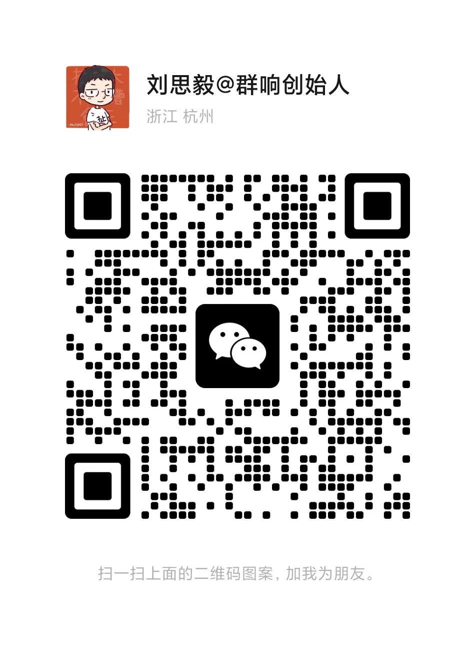 刘思毅:公众号「群响刘老板」,群响创始人,每天访谈1位年入 100 -1000 万的年轻创业者、日更原创文章 2000 天,和100万年轻创业者一起成长的男人。