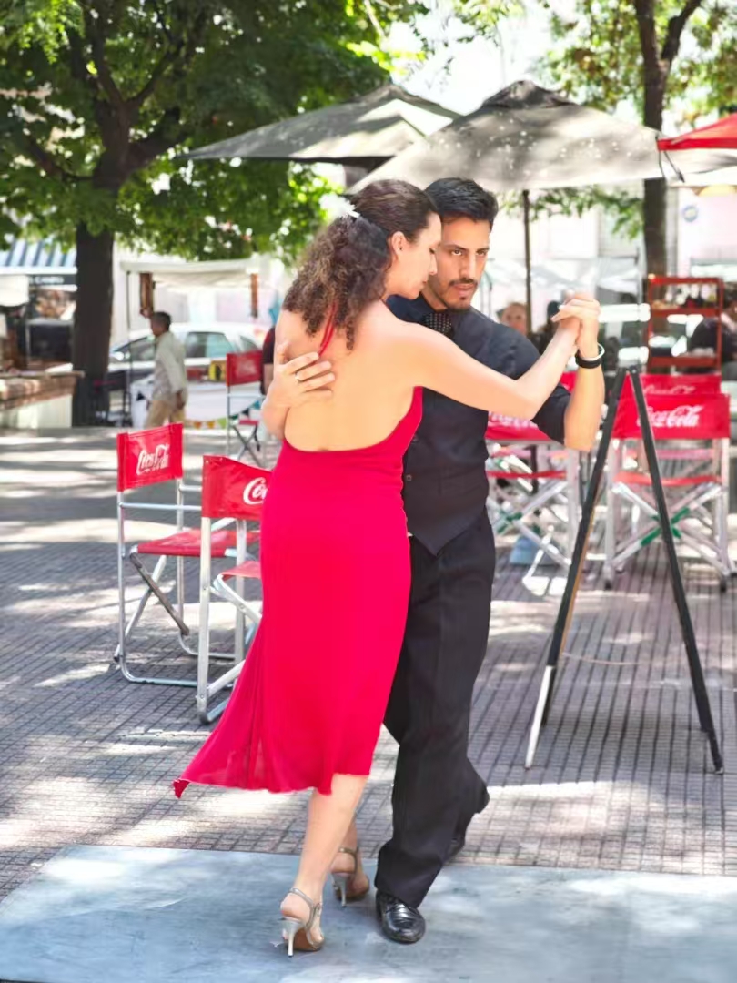 Michelle在阿根廷餐馆门口拍摄的探戈舞者