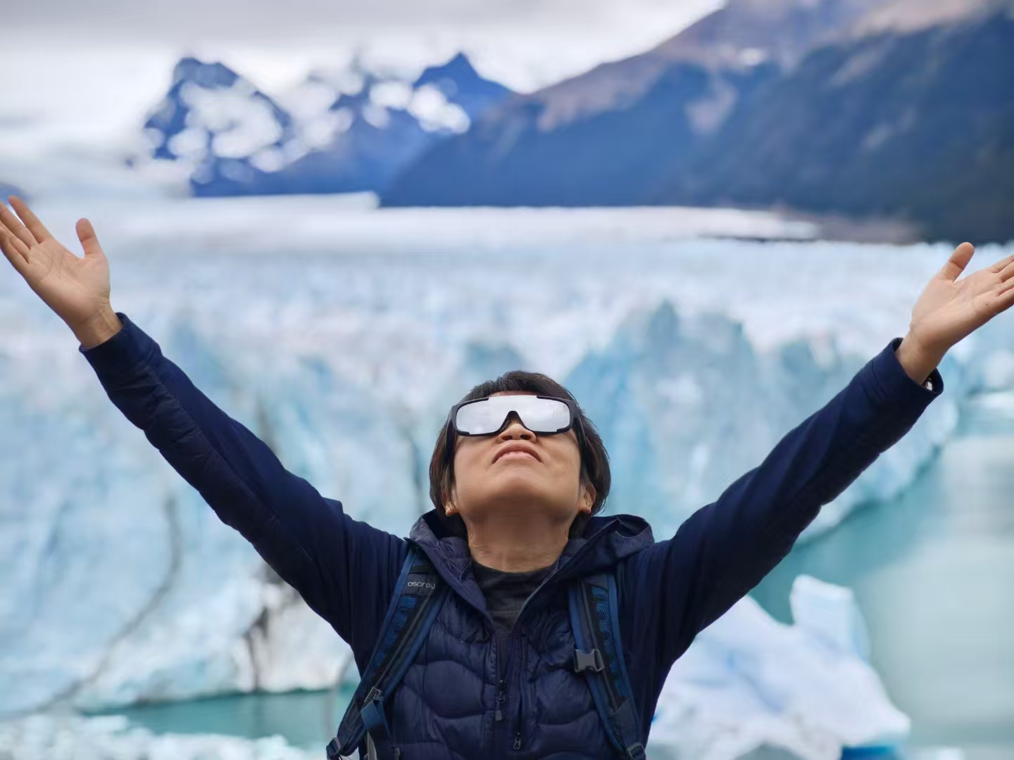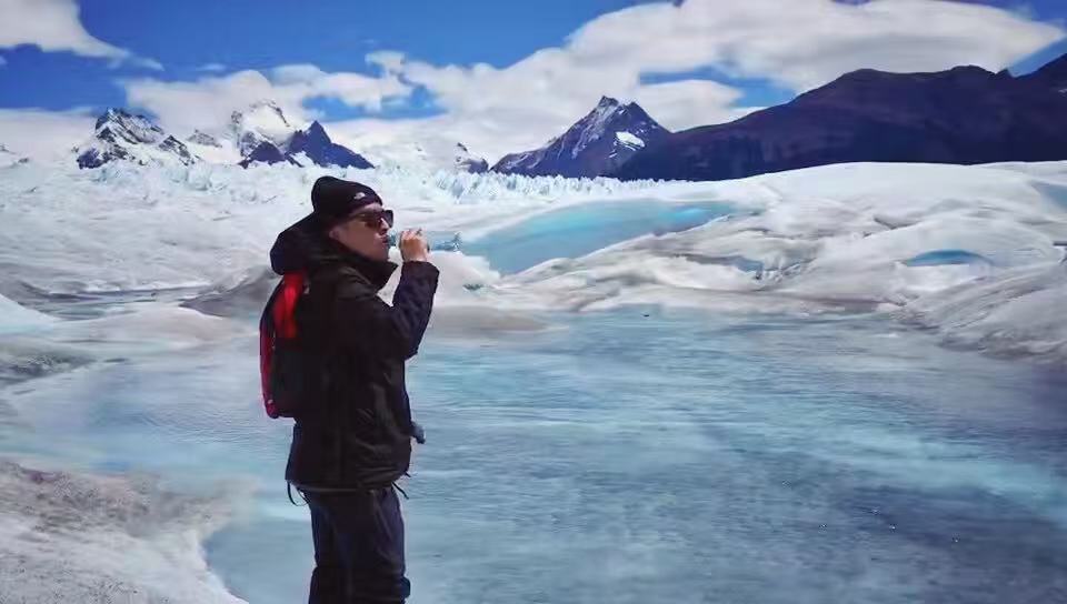 老刘站在阿根廷的冰川上被导游忽悠喝了一口也许带着千年病毒的冰川水