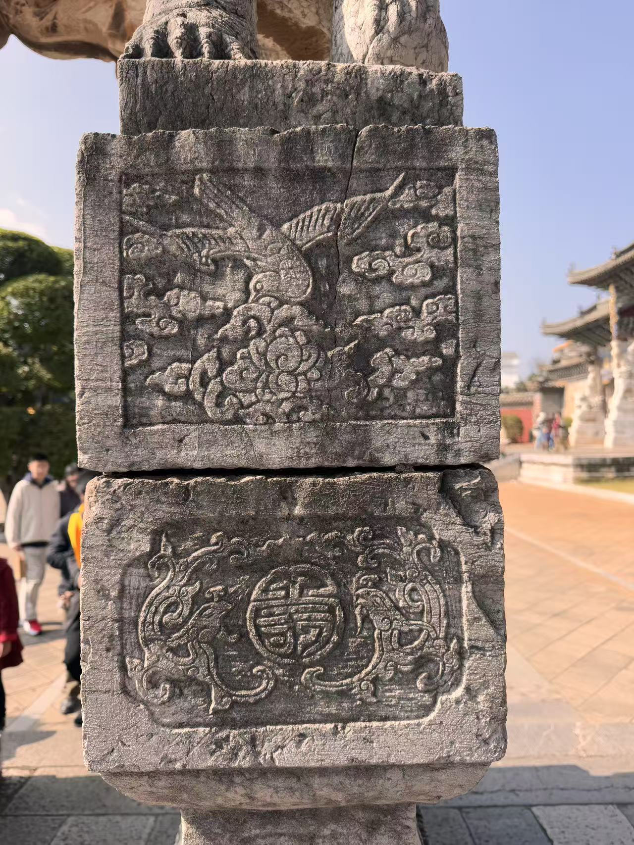 建水文庙带给人的第一个震撼便是巨大的泮池,学问的精深与辽阔超越了象征给人造成了实际的冲击。规整的结构和中轴仿佛把人带回了熟悉的中原,但一抬头棂星门柱头的青花瓷罩子又让人有些恍惚。经过团山在建水雕工方面的“预习”,主殿的雕花门和龙盘柱也许只是在精美和体量上来了个升华,但殿前的大香炉又用敦实的大象鼻子提醒你,这里是建水的文庙,这里是建水。