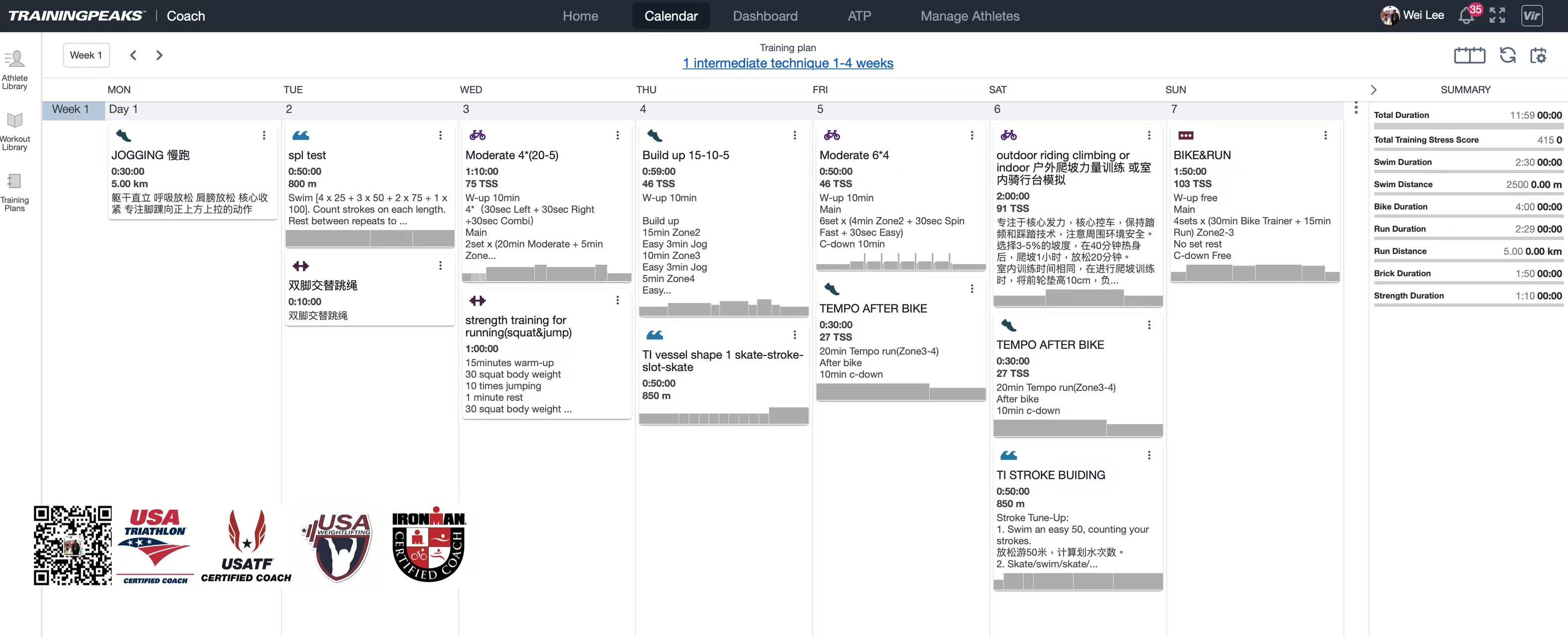 典型的一周训练课表