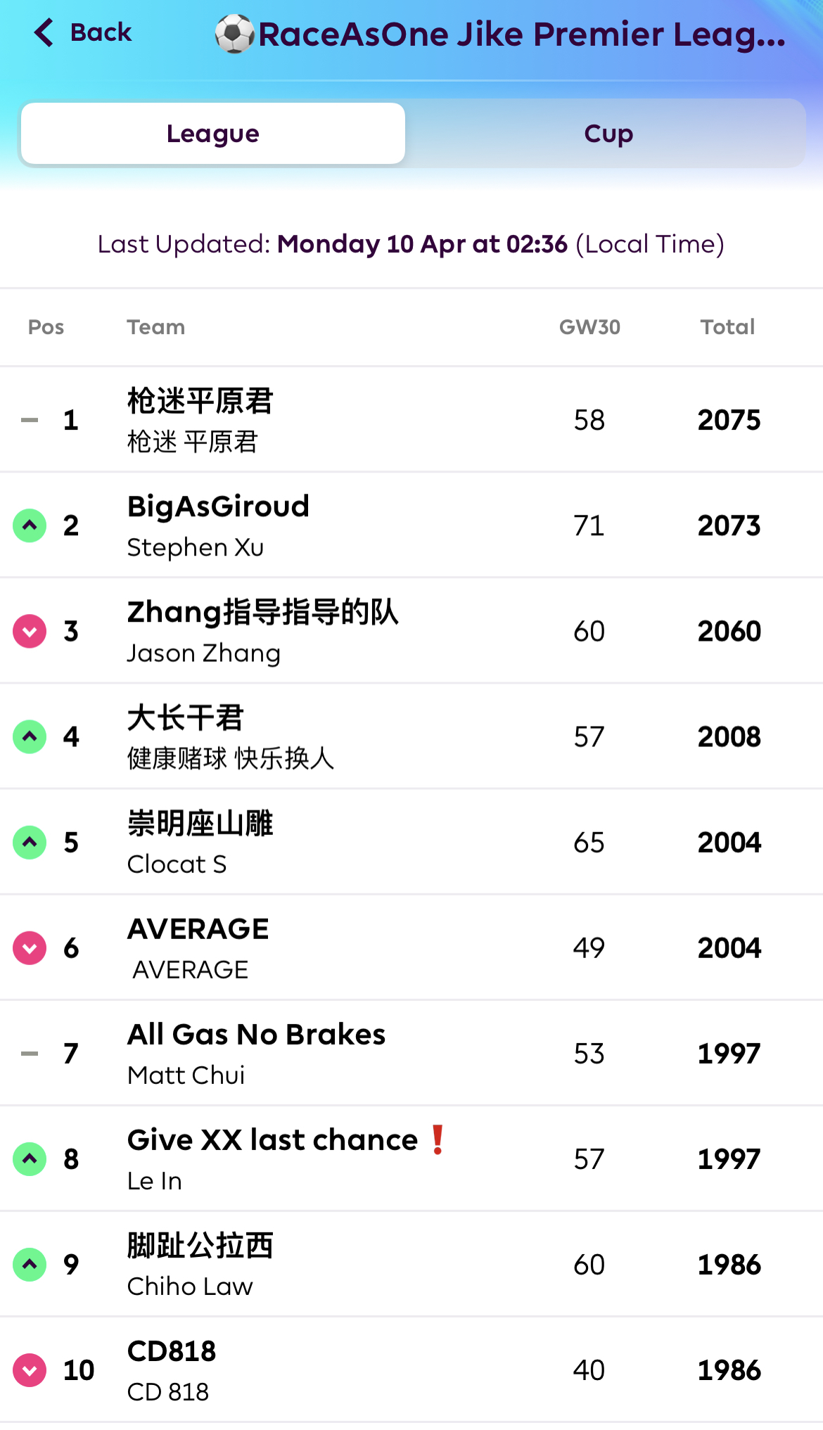 现在就登录英超官网fantasy.premierleague.com注册球队,挑选阵容,输入邀请码【rjthz7】加入RaceAsOne Jike Premier League鸡超联赛