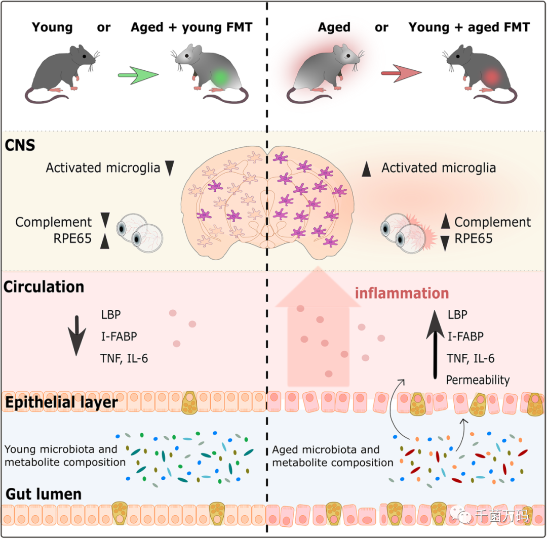 今天介绍的文章是:Fecal microbiota transfer between young and aged mice reverses hallmarks of the aging gut, eye, and brain (年轻与年老的小鼠之间的粪菌移植逆转了肠道、眼睛和大脑的衰老特征),在2022年4月发表于Microbiome。