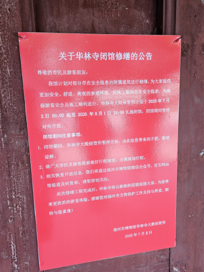 华林寺修缮公告: