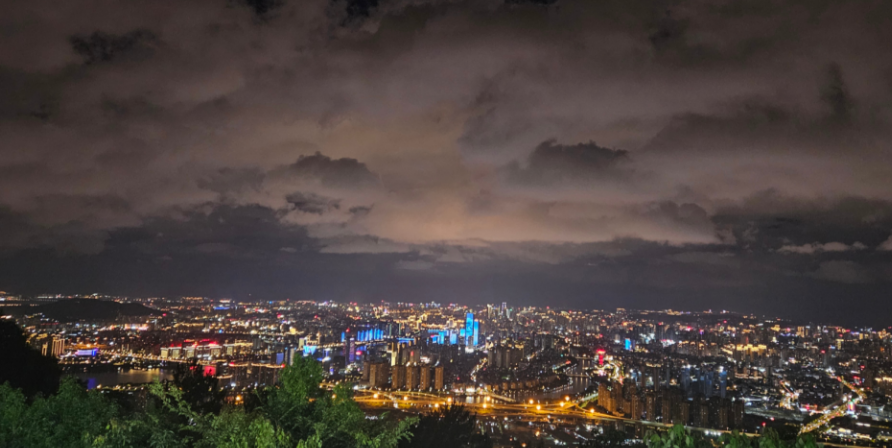 鼓山顶部夜景俯瞰福州是区: