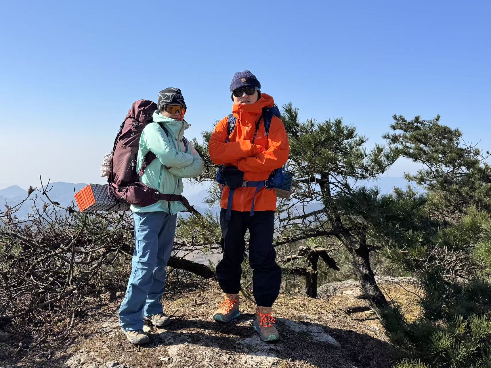 思思和仙人掌(桔红色的冲锋衣)重装徒步合照一张