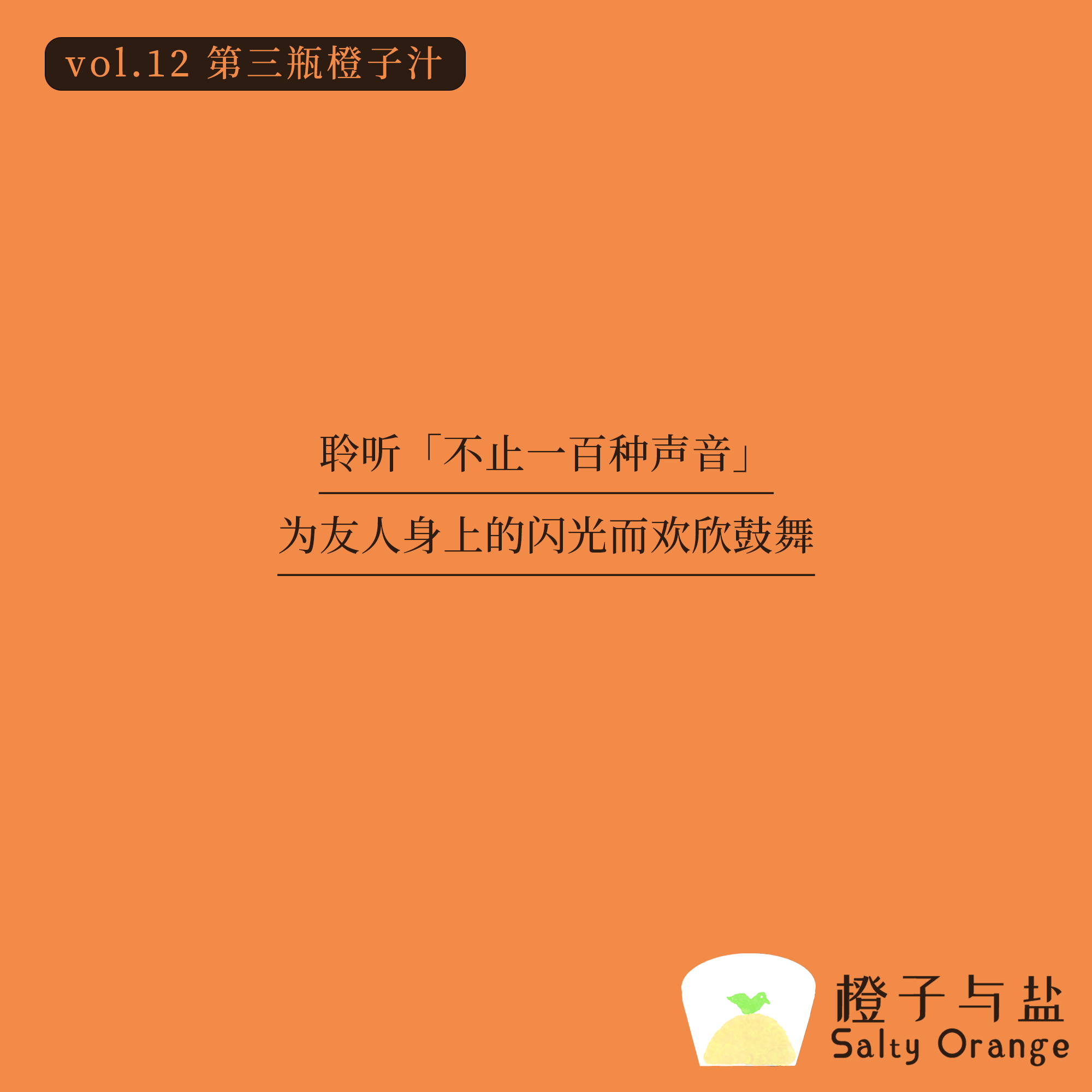 本期节目是《橙子与盐Salty Orange》的夏添橙与《不止一百种声音》的主播猫猫的对谈!!感谢猫猫提供了这次宝贵的聊天机会。