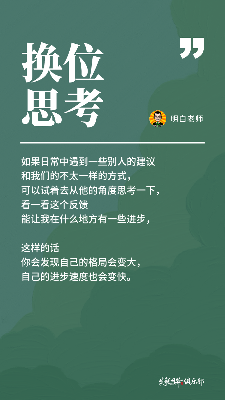 OK. 所以如果日常中遇到一些别人的建议和我们的不太一样的方式,可以试着去从他的角度思考一下,然后看一看这个反馈能让我在什么地方有一些进步,这样的话你会发现自己的格局会变大,然后自己的进步速度也会变快。