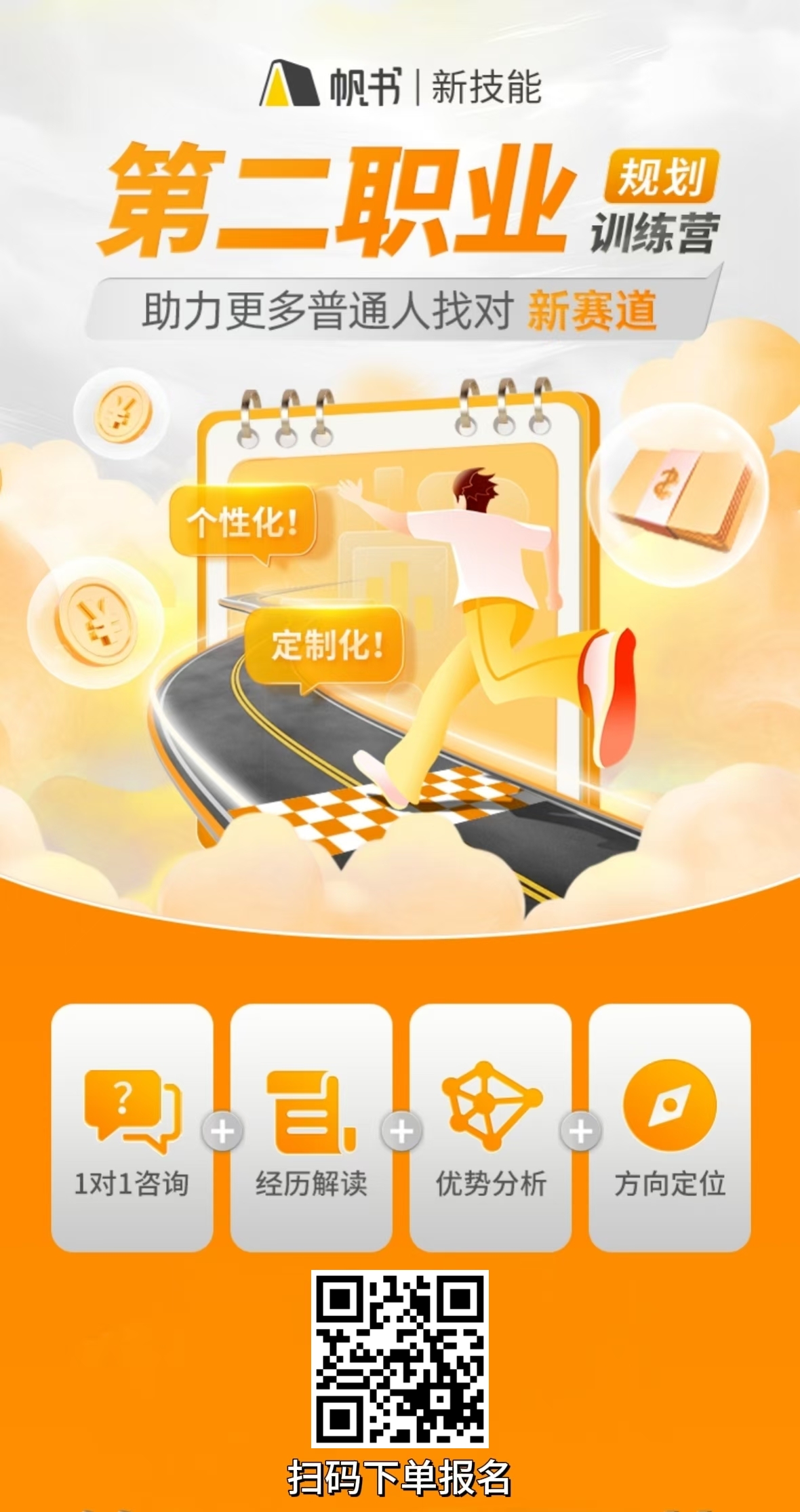 推荐你来试试《5天第二职业规划训练营》, 专业测评帮你厘清方向!1v1咨询+直播课+实用工具箱!带你系统思考如何开启自己的第二职业!