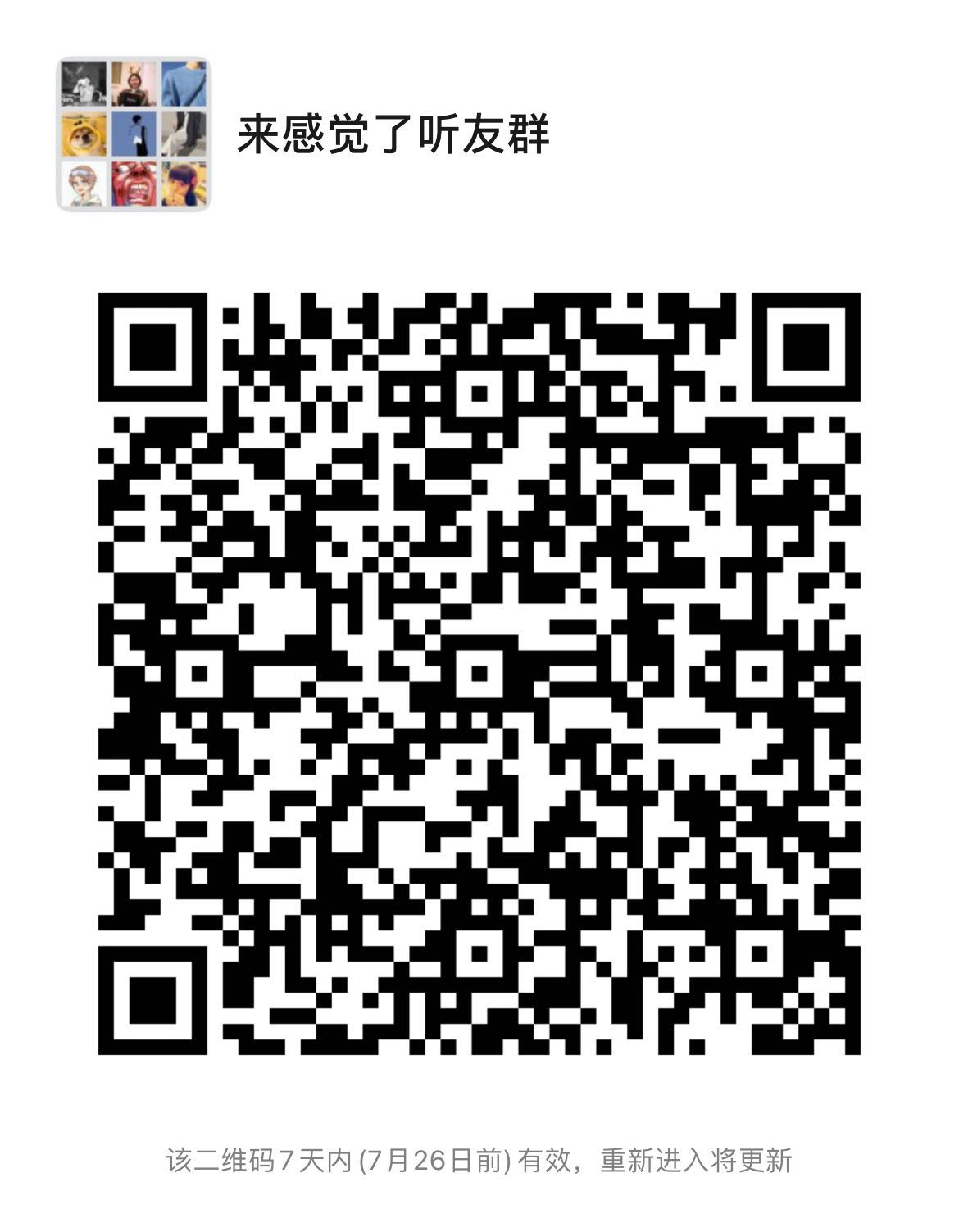 1、听友群:扫码,如过期可添加微信zyt9605240,备注暗号“来感觉了”