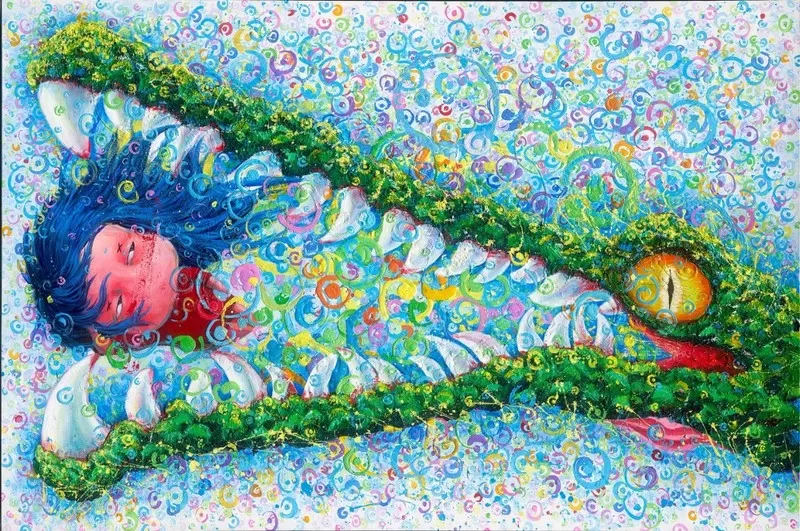 跌入“深渊”后,贾伟在艺术中又重新找回了力量,他在静修时创作了一个叫“如花”的小女孩后来他发现,“如花”就是那个“永生的自己”,但比他“强大100倍”。