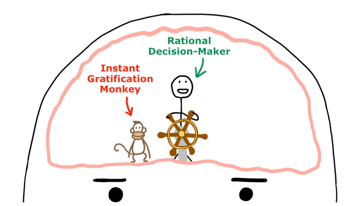 这意味着,每当理性的决策制定者做出理性的决策,想认真做一些事情的时候,猴子就蹦了出来,告诉我们:让我们刷会儿短视频吧!听会儿音乐也不错!冰箱里还有你喜欢的松饼呢!...... 直到我们的大脑完全被“即乐猴”操纵~