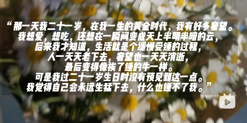 (这首歌和下面的whatever都是在B站视频2021 我的21岁 里听到的。这是一个我非常喜欢的视频,视频属于本人心中2021年所看视频里的top1,推荐观看!视频里的主人公是一个非常勇敢、生命力极强的男生,在生活的重压下没有被困难打倒,而是不断生猛地活下去,真的十分佩服他的精神和意志力!!)