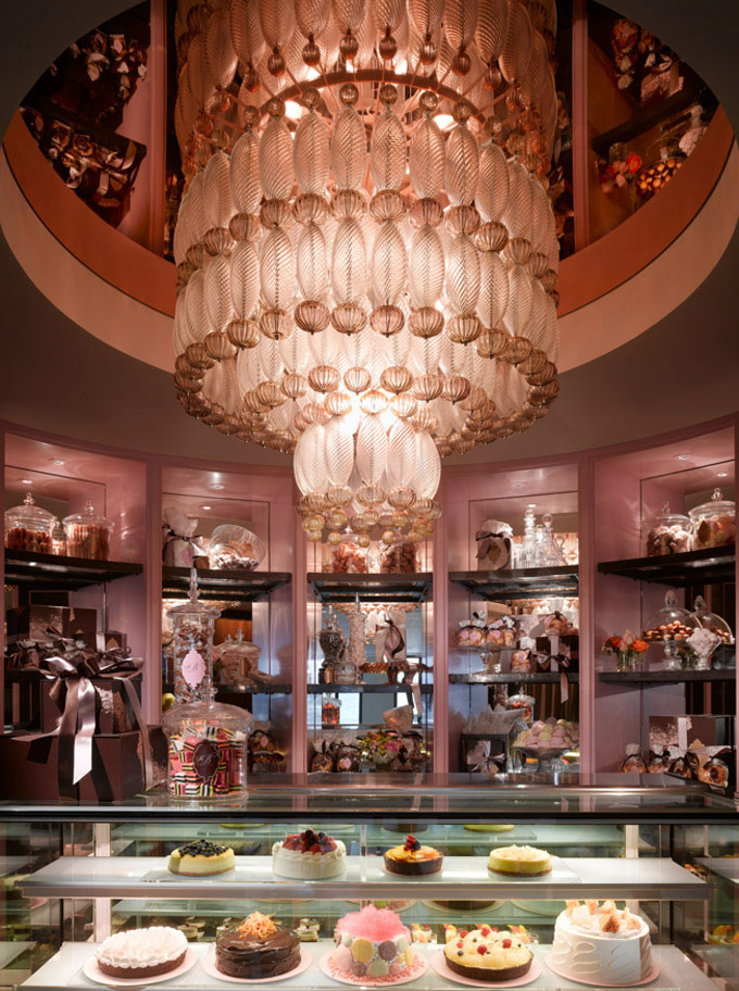 ・进门的Sweet Corner(餐厅糕点店)天花板悬挂着一盏5尺长的“Venini”水晶灯,“Venini” 是产“Murano” 水晶最有名的其中一个品牌。Murano的颜色跟其他品牌不一样,非常有质感和低调,但是价值不菲。全球只有两盏,另外一盏在50年代曾常挂在罗马的英国领事馆。