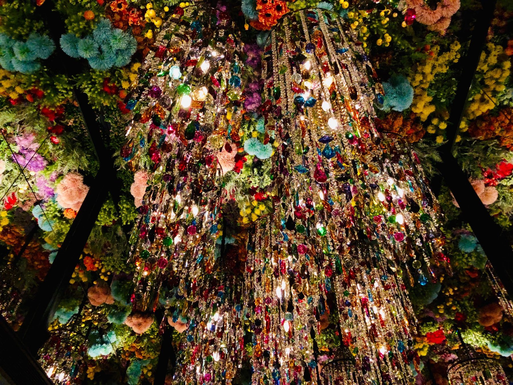 ・目前旧有的花穹已由36组、每盏长1.7米,总共76,000粒手工制作的多形水晶组成吉普赛吊灯所取代。这座含有20多种珠宝色调的吊灯,形成了一座集不同色彩、纹理和形状的壮丽顶篷,往上看就好像万花筒一样,相当璀璨炫目。