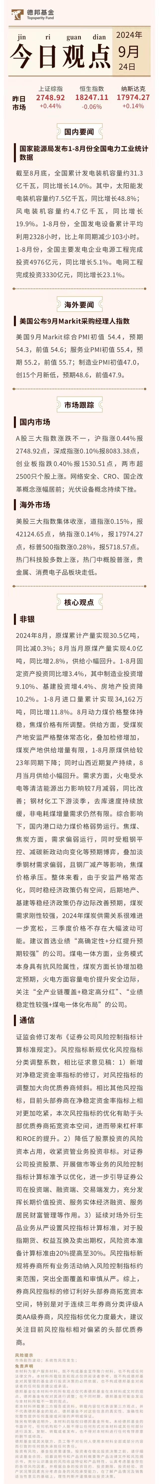 早安财经唤醒脑!这里是蝴蝶主持的包米郎财经晨间快车。今日要点速递:沪深股市喜忧参半,沪指微涨,创业板下滑;海外市场集体上扬,科技中概股大多看涨;电力数据出炉,发电投资增长亮眼;美国PMI指数透露经济寒暑,制造业显疲软;煤炭供需紧平衡,板块选股策略出炉;券商风控尺度革新,头部券商受益几何?深度列车即将发车,商业财经洞察不停站,明天见!