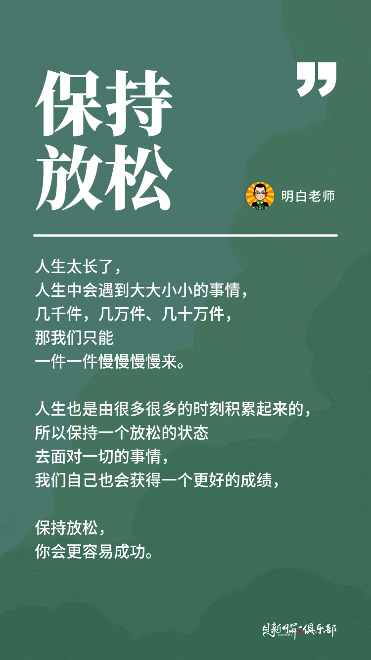 当然我觉得追求进步,追求更好的结果是对的一个选择,但是它和我们放松地去看待这件事情是不冲突的。