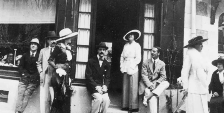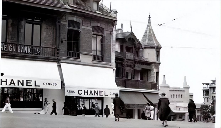 1910年法国康朋街21号店门外的香奈儿与卡柏,门店由卡柏出资赞助,是香奈儿迈入时尚行业的第一步: