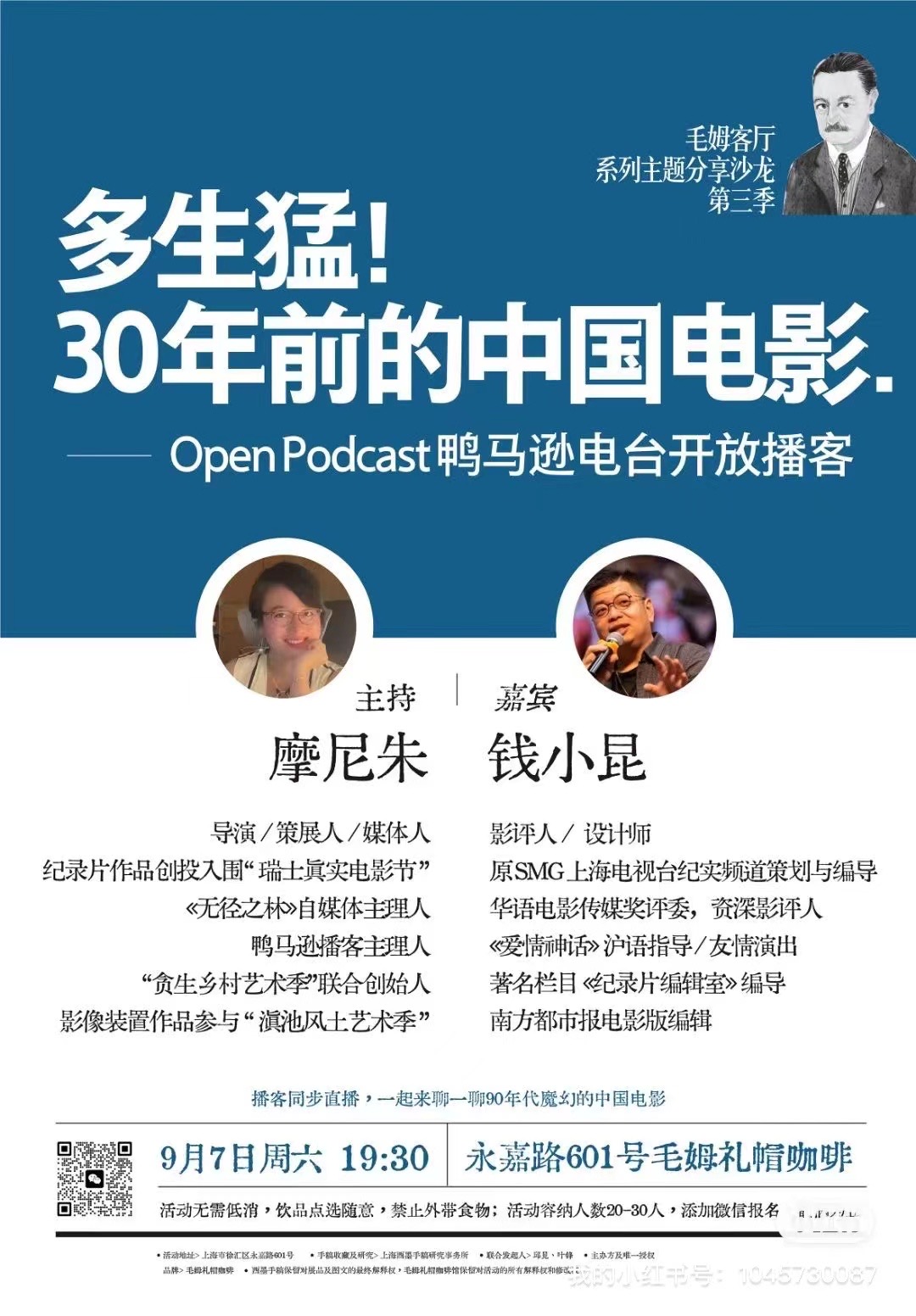 第一次在上海永嘉路的“毛姆礼帽咖啡馆”尝试了开放播客,聊的还是30年中国的B级片。