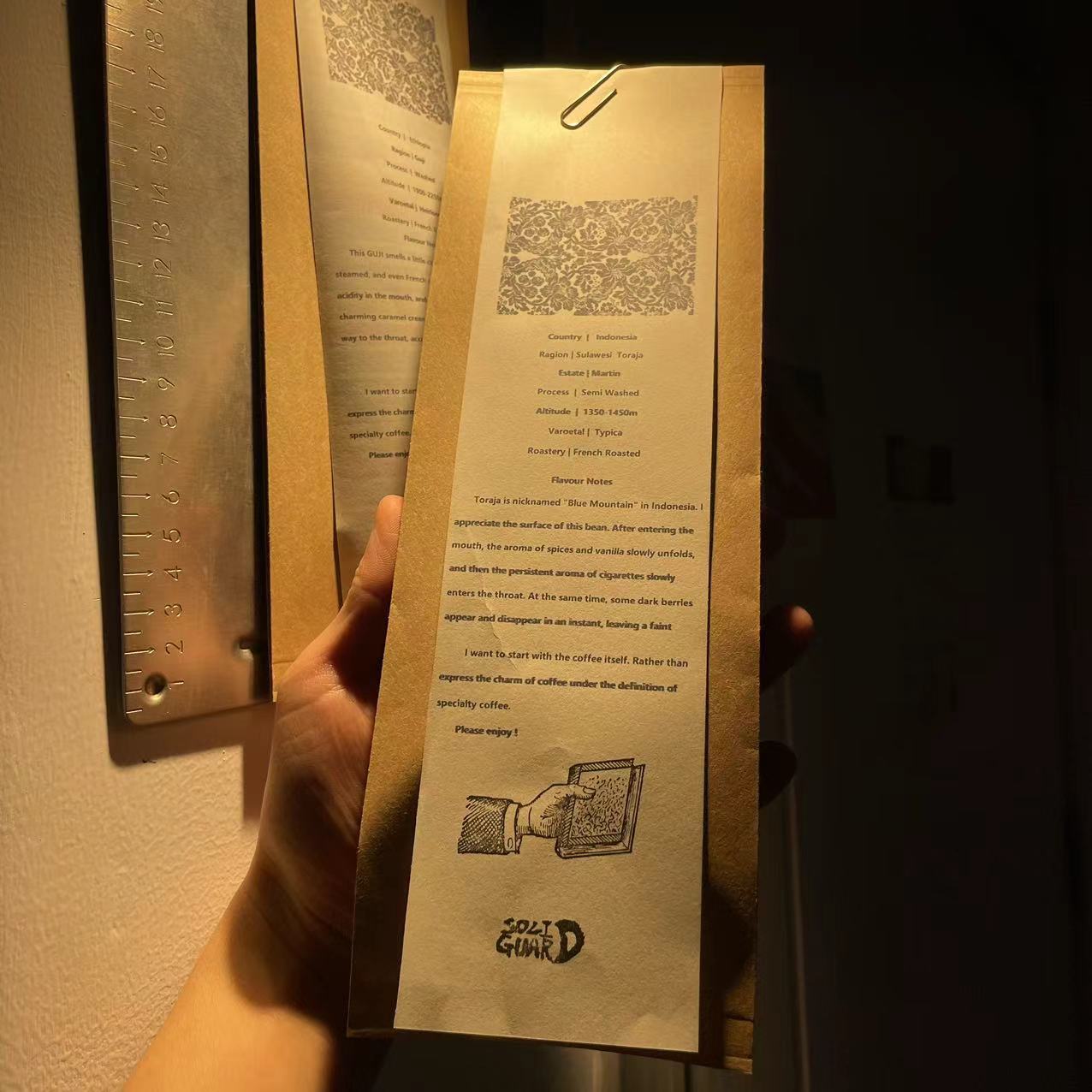 SOLID GUARD,直译“坚实的守卫”,像是一种精神图腾,是对被赠予者和本人在外“征战”的一种陪伴。本人蒙古族,离开家乡后开始了游牧生活。外出居住的房子(出租屋)叫做GER (圆顶帐篷/蒙古包)。所以,GER是售卖/制作咖啡的媒介,SOLID GUARD是守卫。