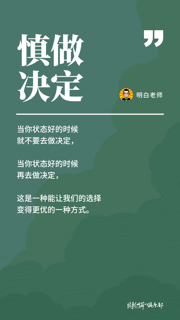 今天想分享的一句话叫做不要在状态不好的时候,或者你情绪不好的时候去思考重要的事情。