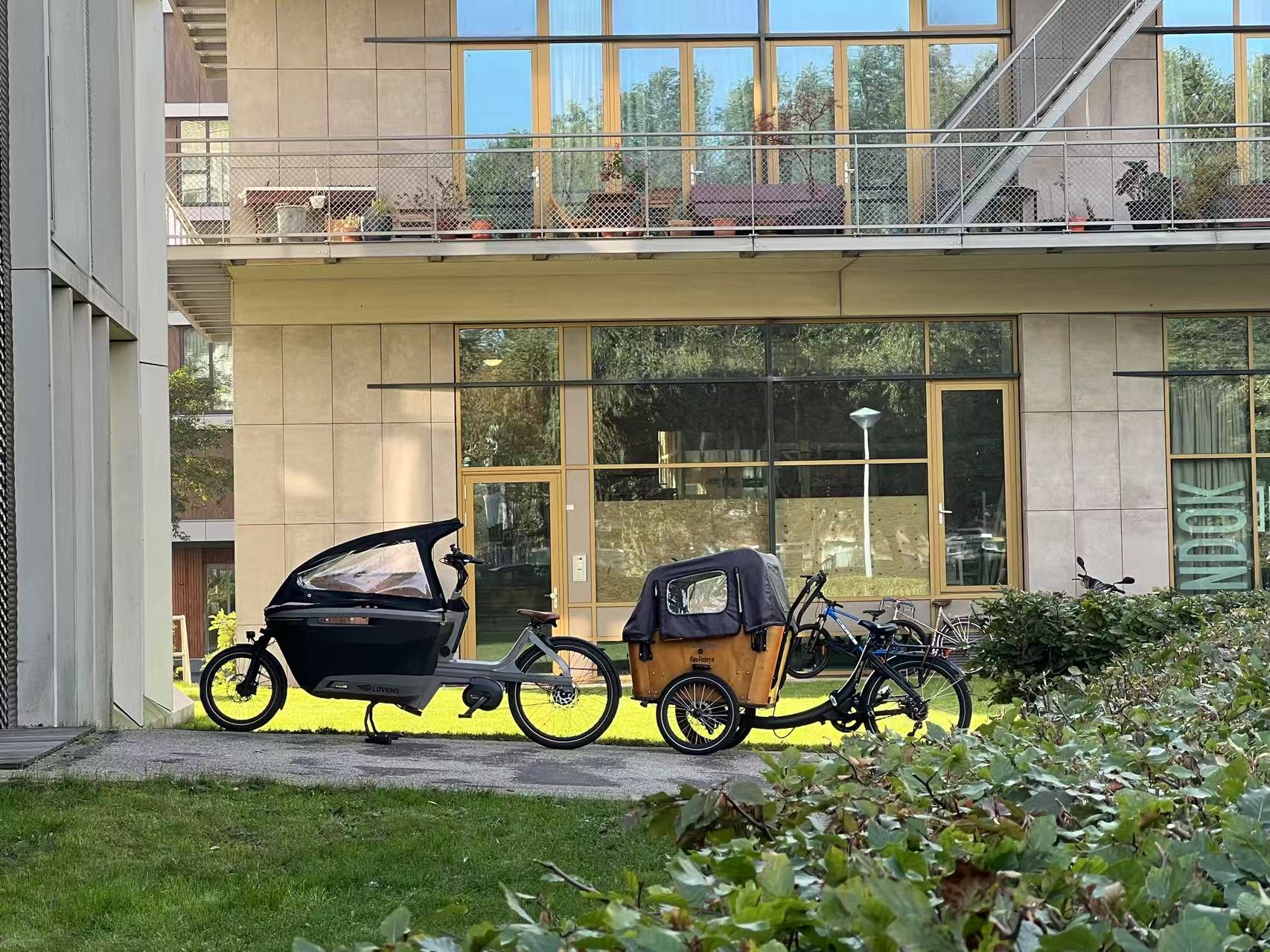 我回头可以发一个照片给你,他们自行车前面有一个长长的木头框,里面可以放3个小孩儿,你在街上看到的大部分都是男的背着小孩儿。