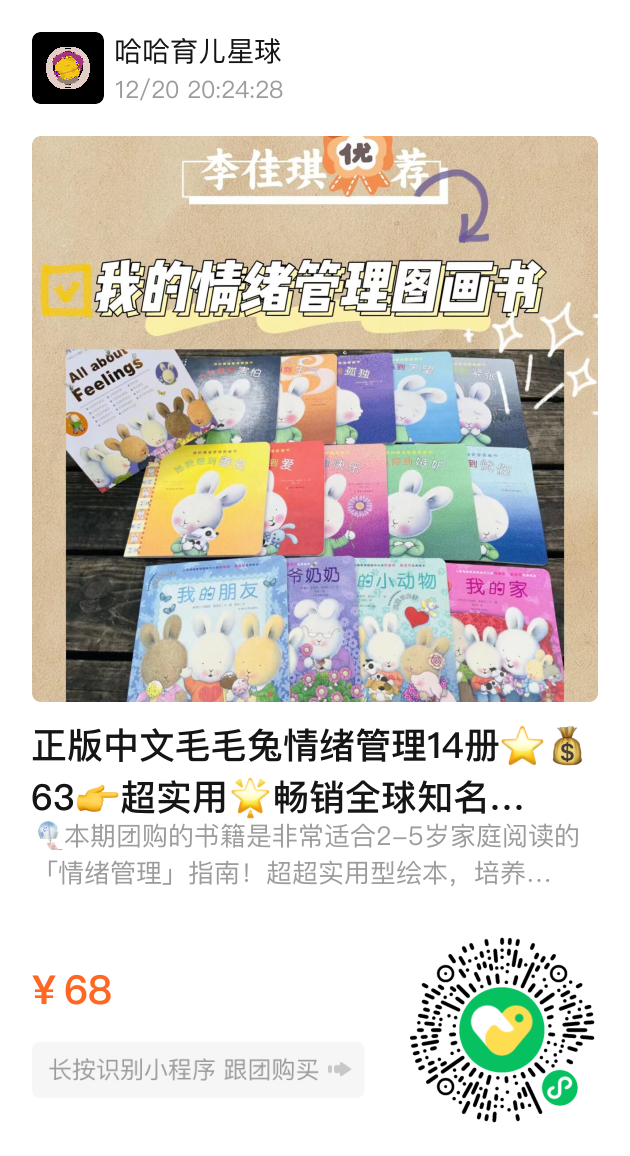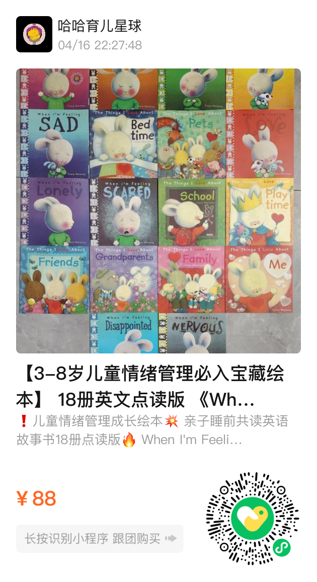 《毛毛兔 When I'm Feeling 》,这套真的是情绪认知、管理超宝藏绘本,小朋友可以从3、4岁反反复复读到6、7岁。