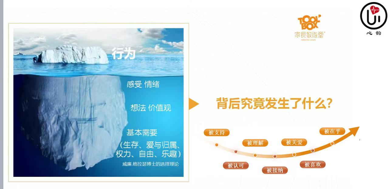 同时,将理论基础融合进了每一个问题的解决方案里。带家长刻意练习,情绪冰山理论,穿透行为表面,看到孩子的情绪与需求。