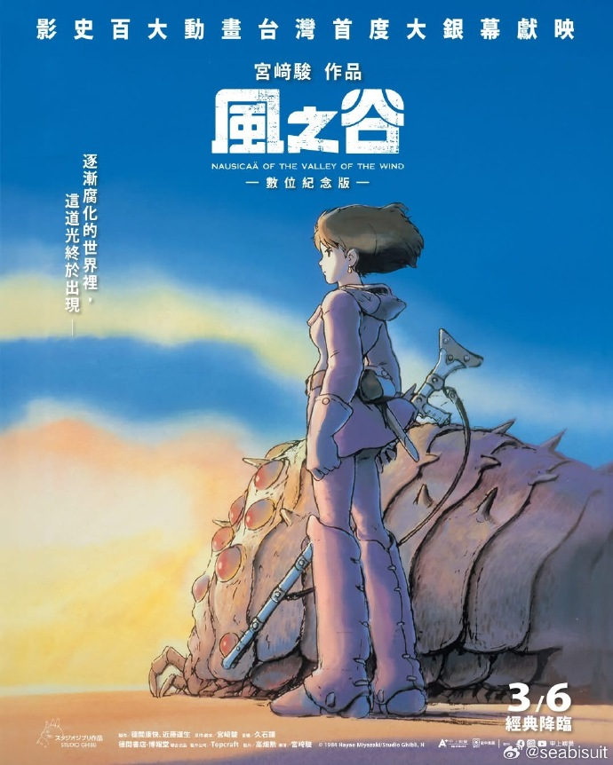 《风之谷》是由宫崎骏自编自导,岛本须美、纳谷悟朗和松田洋治担任主要配音的动画电影。该片于1984年3月11日在日本东映株式会社下属电影院线上映 [2] [7]。