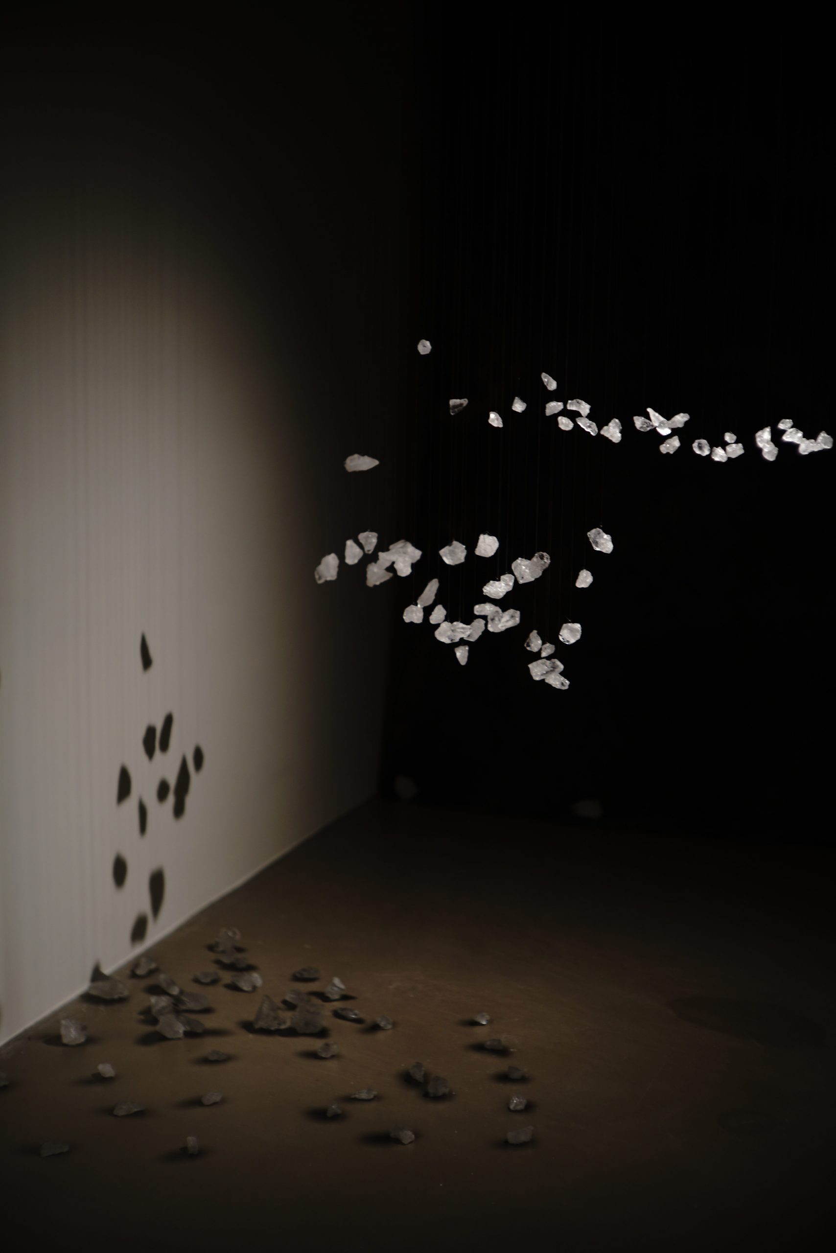 录节目这天下午,她用视频连线的方式带我看展:铂金印相、宣纸、明矾、轻纱、光影、声音,这些物料和影像模拟出来的混沌潮湿的记忆片段,构建出一个时空错置的独特所在。视觉艺术的魅力很难用语言转译,我们顺着她小时候学摄影的经历,一路从她的家乡瑞安聊到现在定居的香港,也聊了聊展览内外与记忆有关的人事物。