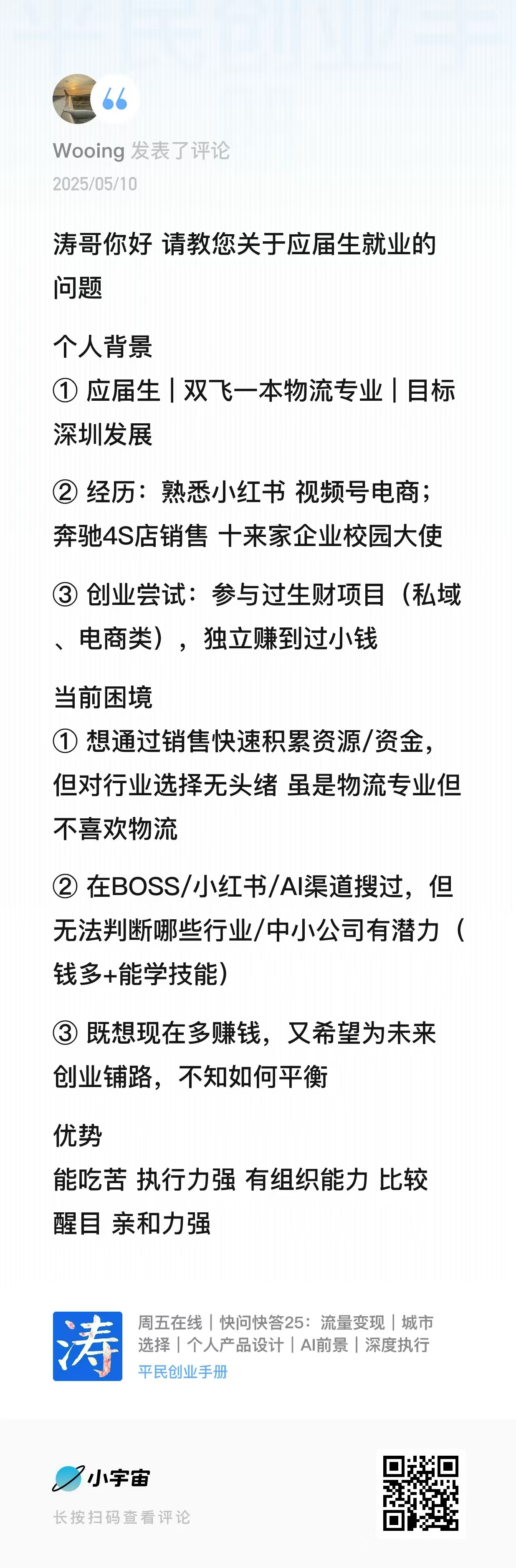 我的微信:xuejieyou6,欢迎撩我,我在「屋里涛说」等你,来星球《平民创业手册》有问必答,
