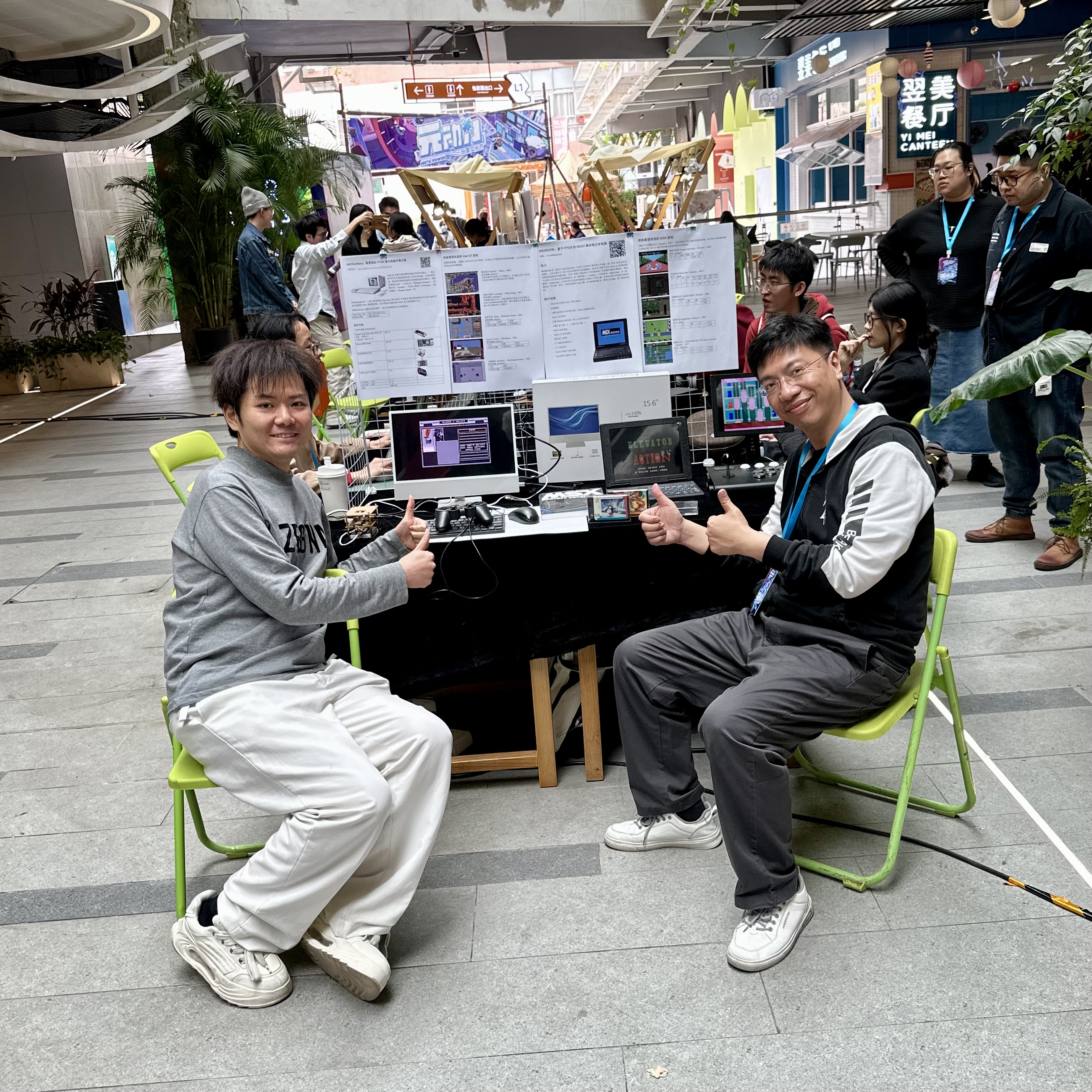 由国内知名复古计算机研究学者蓬岸老师(左)展出的FPGA复古电脑