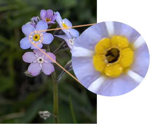 下图突出显示勿忘草黄色花喉,雄蕊、雌蕊位于花喉下的花冠管中(图源:RBG Kew):