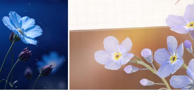 下图左:沈星回五星卡过场动画截图,下图右:牵绊-时光轴界面右下角星辰花(图源:游戏截屏):