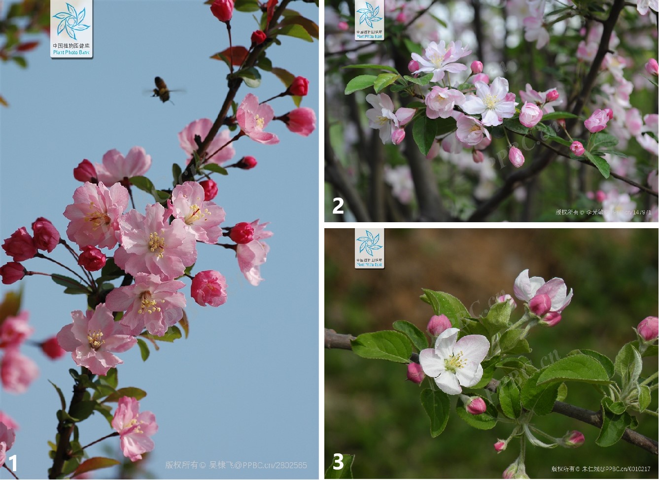 图1:垂丝海棠,图2:西府海棠,图3:苹果花(图源:PPBC):