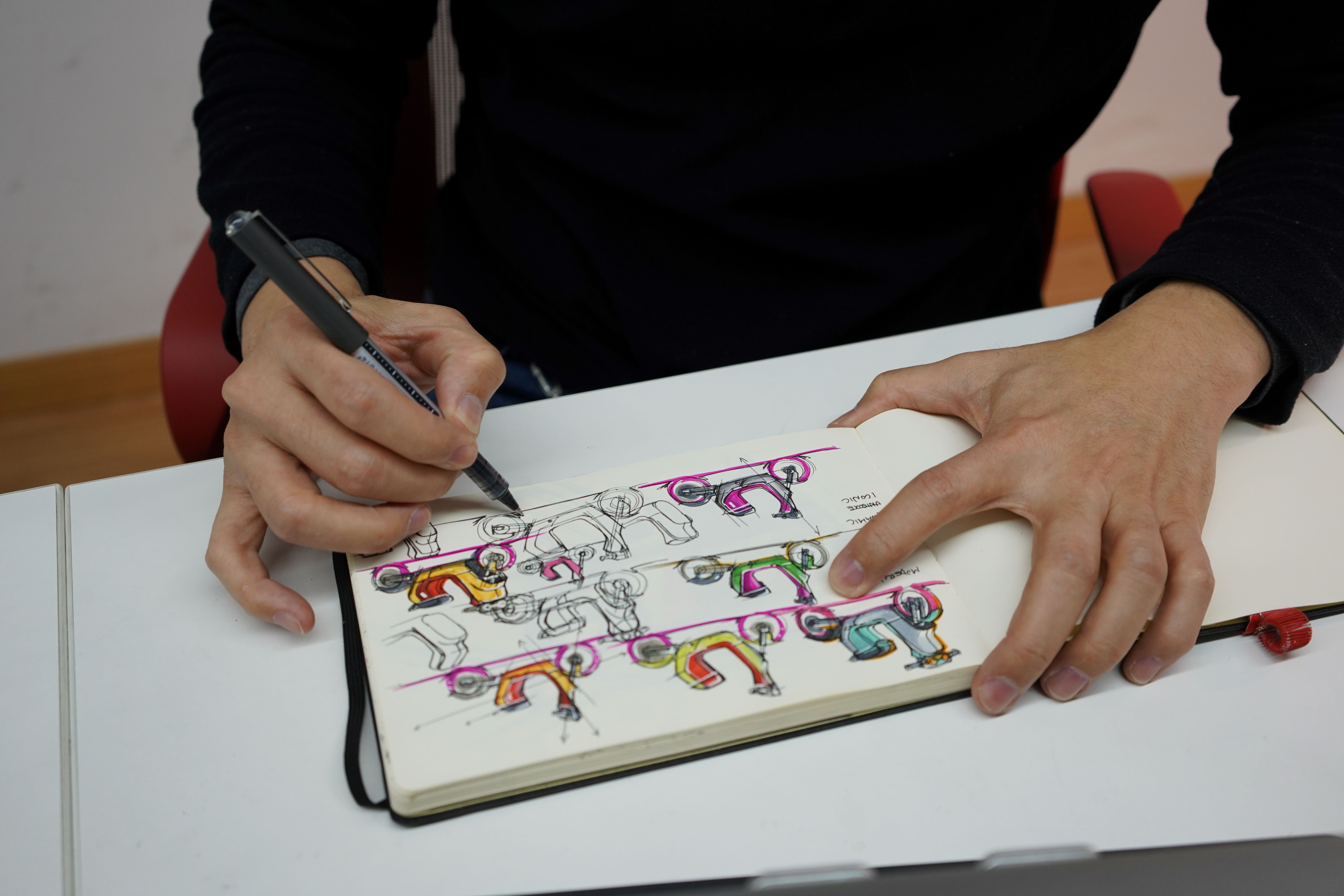 《设计之问》受访设计师刘传凯,在采访期间绘制设计草图