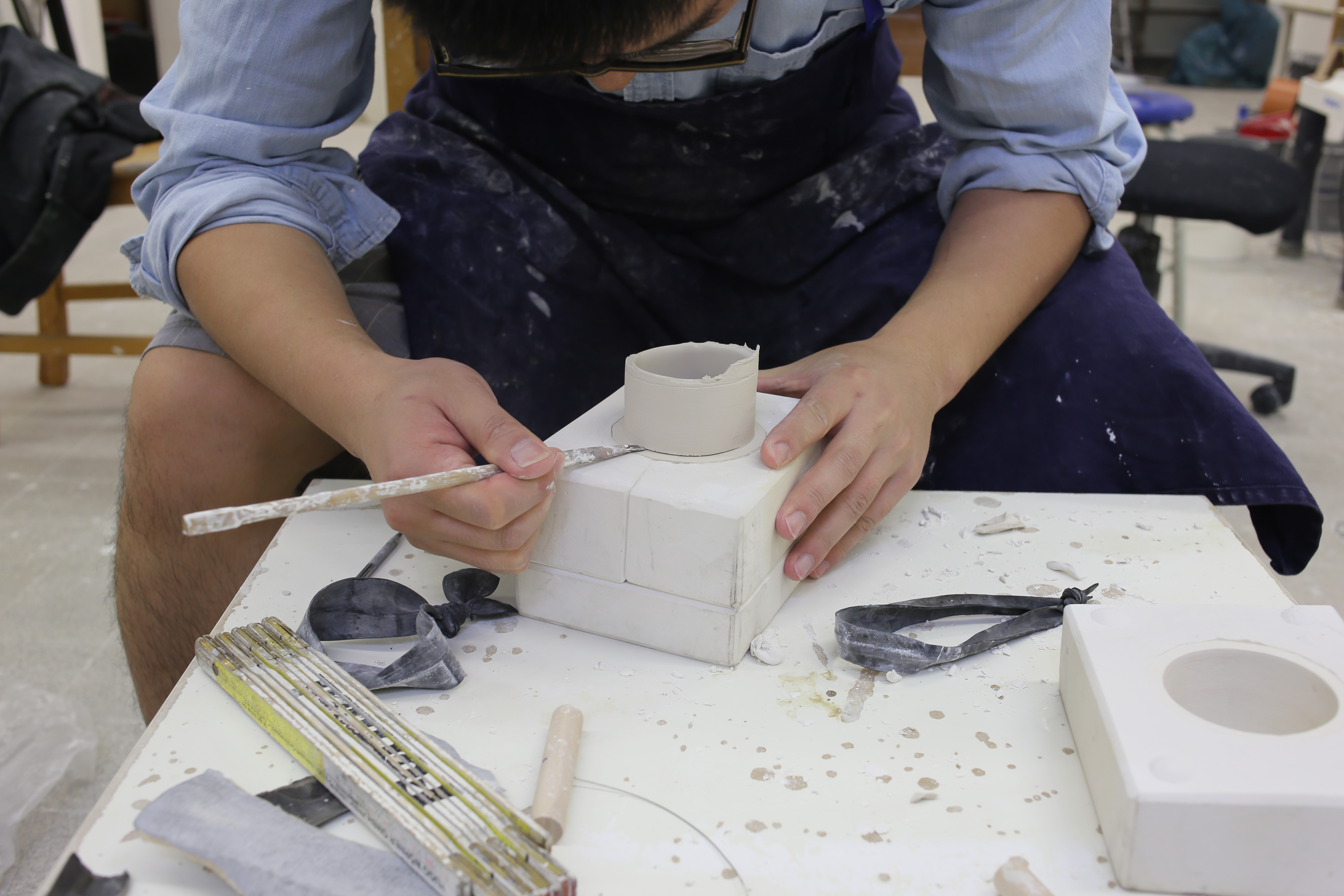 《设计之问》受访设计师单鹏昊,德国留学期间在学校的陶瓷工坊制作模型