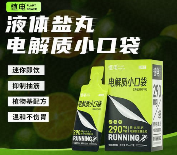 植电电解质小口袋,合理配方,富含高强度运动所需要的各种电解质成分,方便携带,是你长距离越野跑的必备补给!