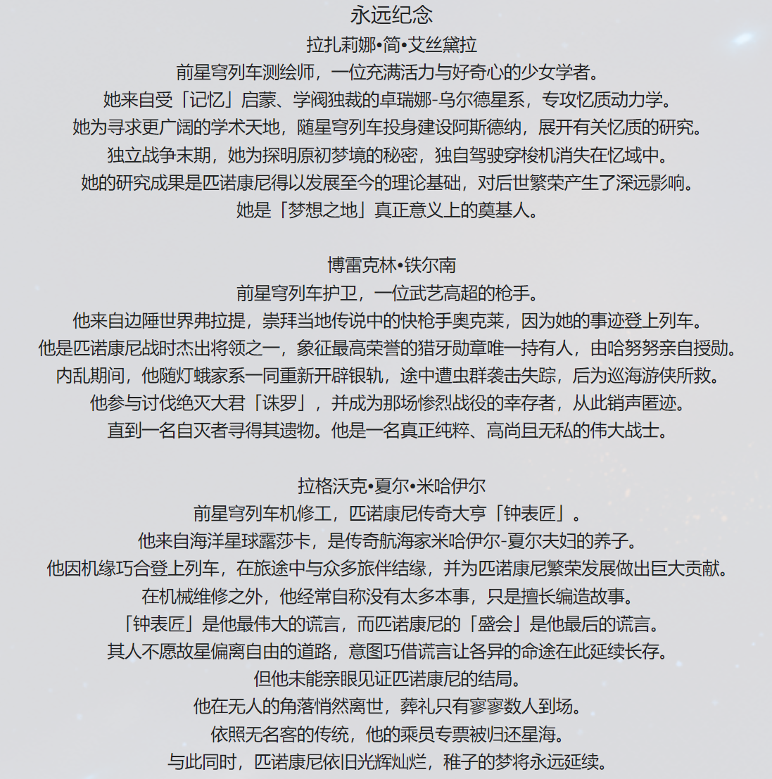 【光锥:为了明日的旅途】(拉扎莉娜、米哈伊尔、铁尔南、帕姆)