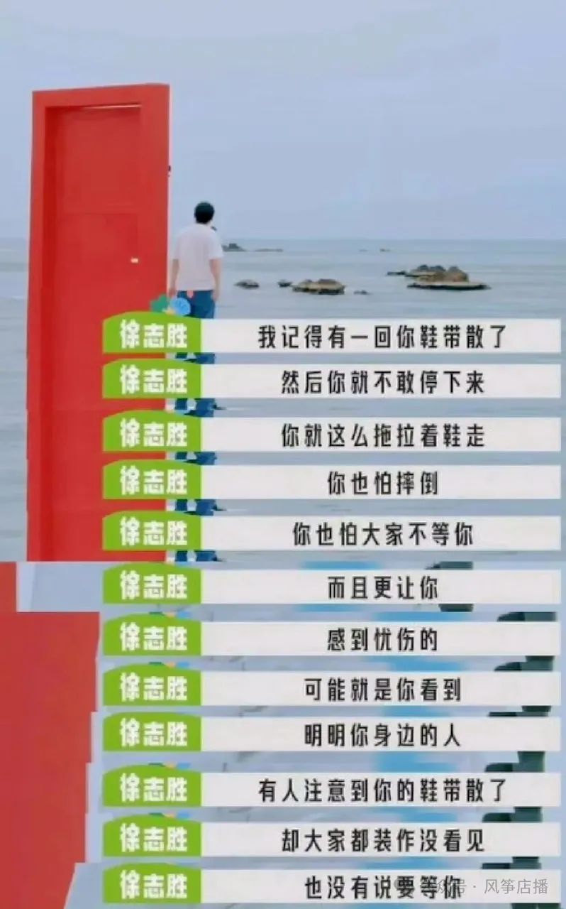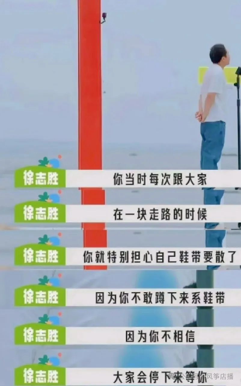 脱口秀演员徐志胜,之前参加综艺节目时,谈及自己小心翼翼的青春时光:“小的时候,每次和别人一起走路,最担心自己鞋带散开。”因为他不相信有人愿意停下来,等着自己将鞋带系好。