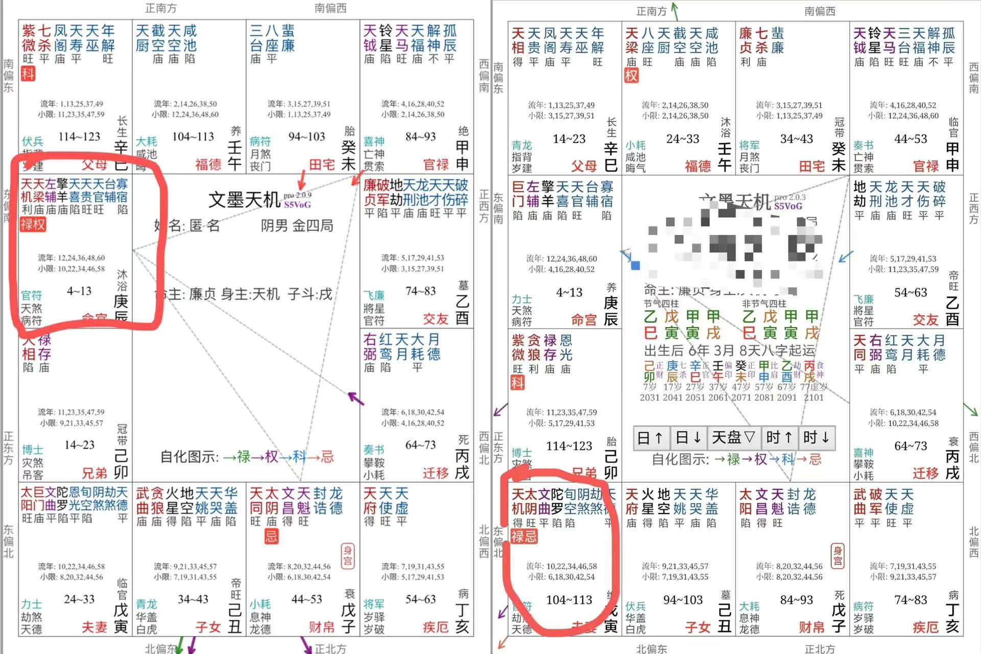 找到自己的禄存星/化禄星所在的地支——同样的地支则是对方命宫/夫妻宫所在地支(参考下图,禄存星所在地支为“巳”,对方夫妻宫所在地支也为“巳”)