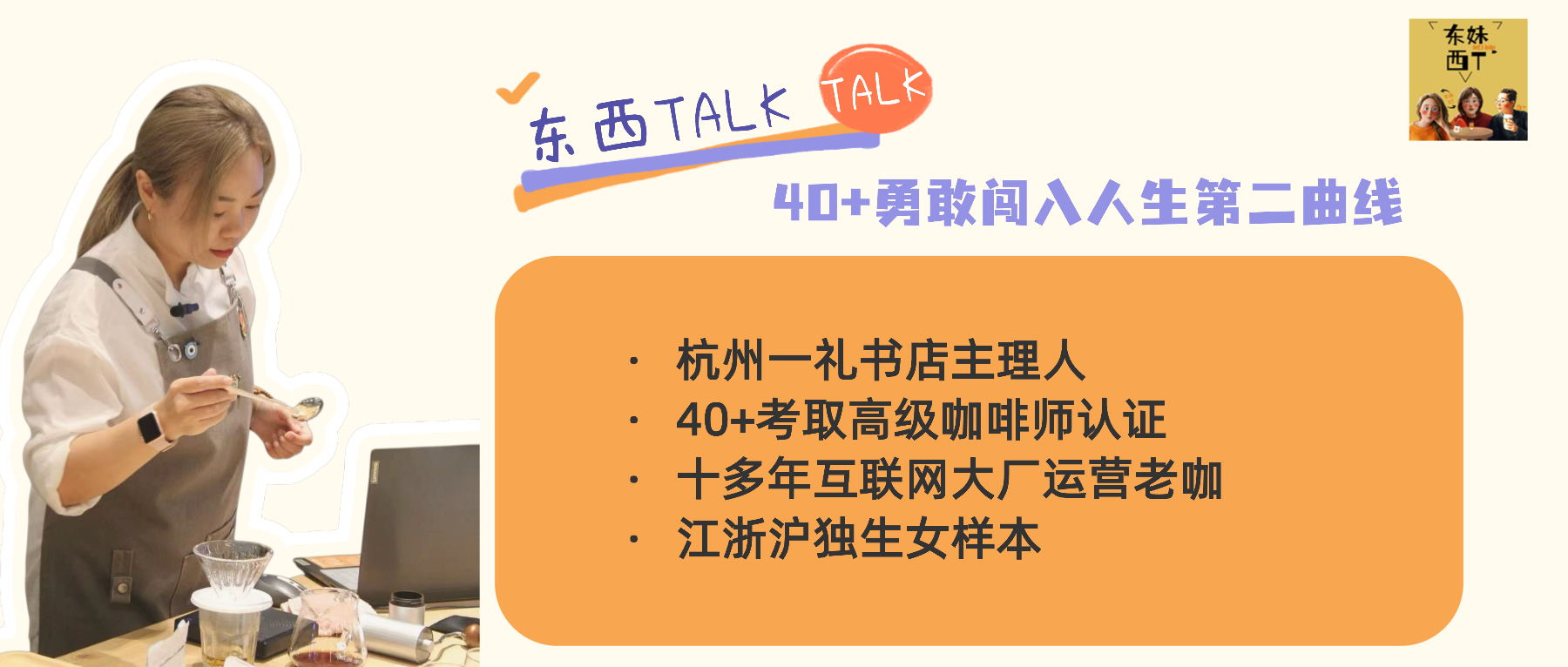 本期「东西TALK」,我们在杭州的一礼书店,和主理人CoCo一起聊一聊她的故事。做为一名实体书店的主理人,从互联网大厂毕业后,又是考咖啡师,又是经营实体店,她是如何丝滑转型找到人生第二曲线的呢?