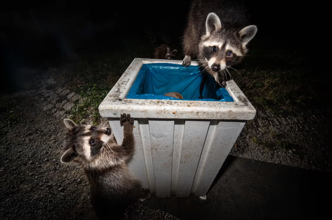 图:翻垃圾桶的浣熊(图源:卫报)