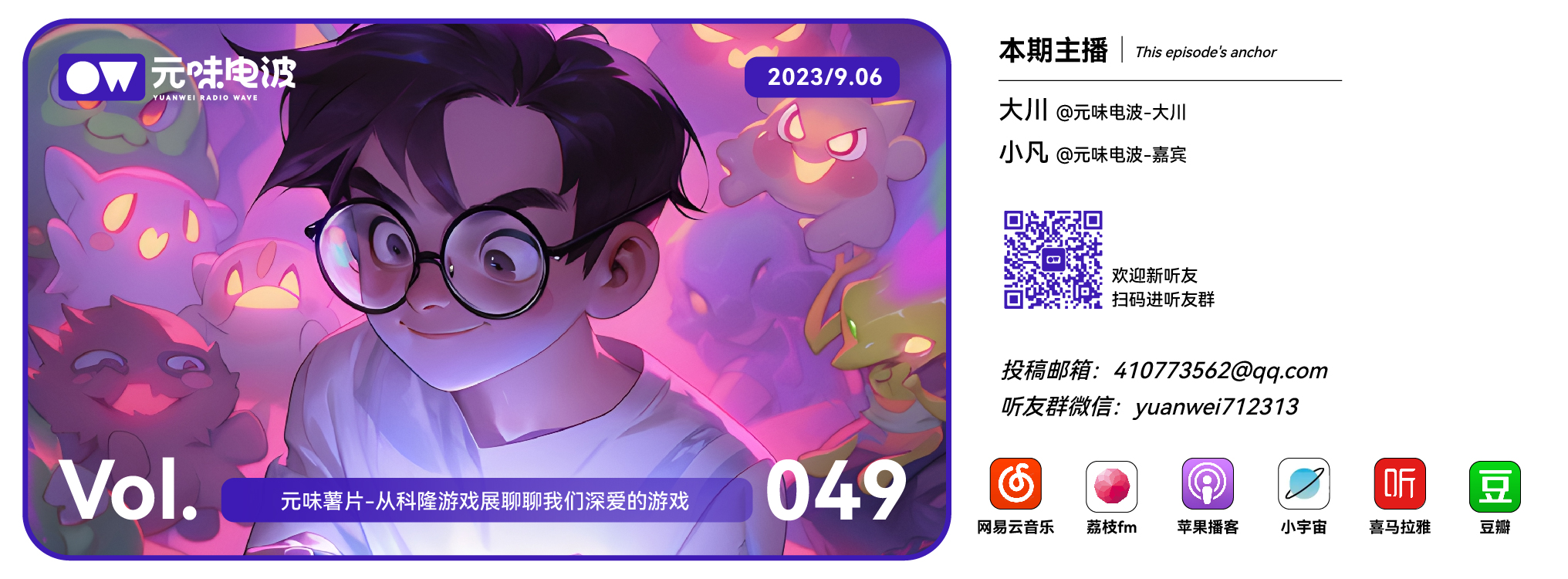 本期节目我们聊了聊最近的科隆游戏展,有我们的国产3A大作《黑神话悟空》也有,其他大家耳熟能详的游戏大作,两个老男人说到游戏话匣子一打开根本合不上,为什么我们还是如此深爱着游戏,因为在我们成长的青葱岁月里,是游戏带给了我们最简单的快乐和最单纯的幻想,这期节目让大川和小凡一起和大家唠唠关于游戏那点儿事儿!