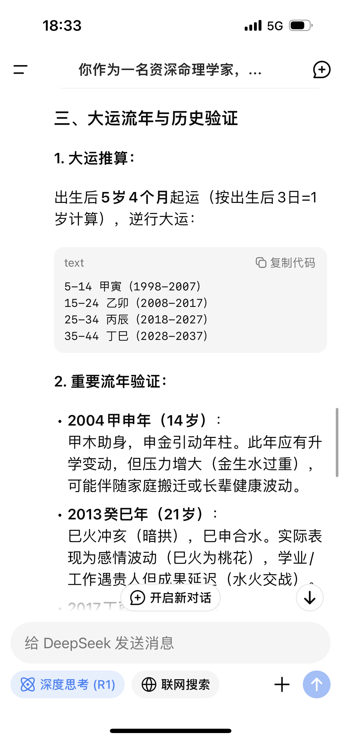 Deepseek一上线变被各路网友玩坏了,什么算前世今生、胎记位置、八字合婚、今年运势的什么都有,那这期就来一一说明:ai真的会代替命理师么