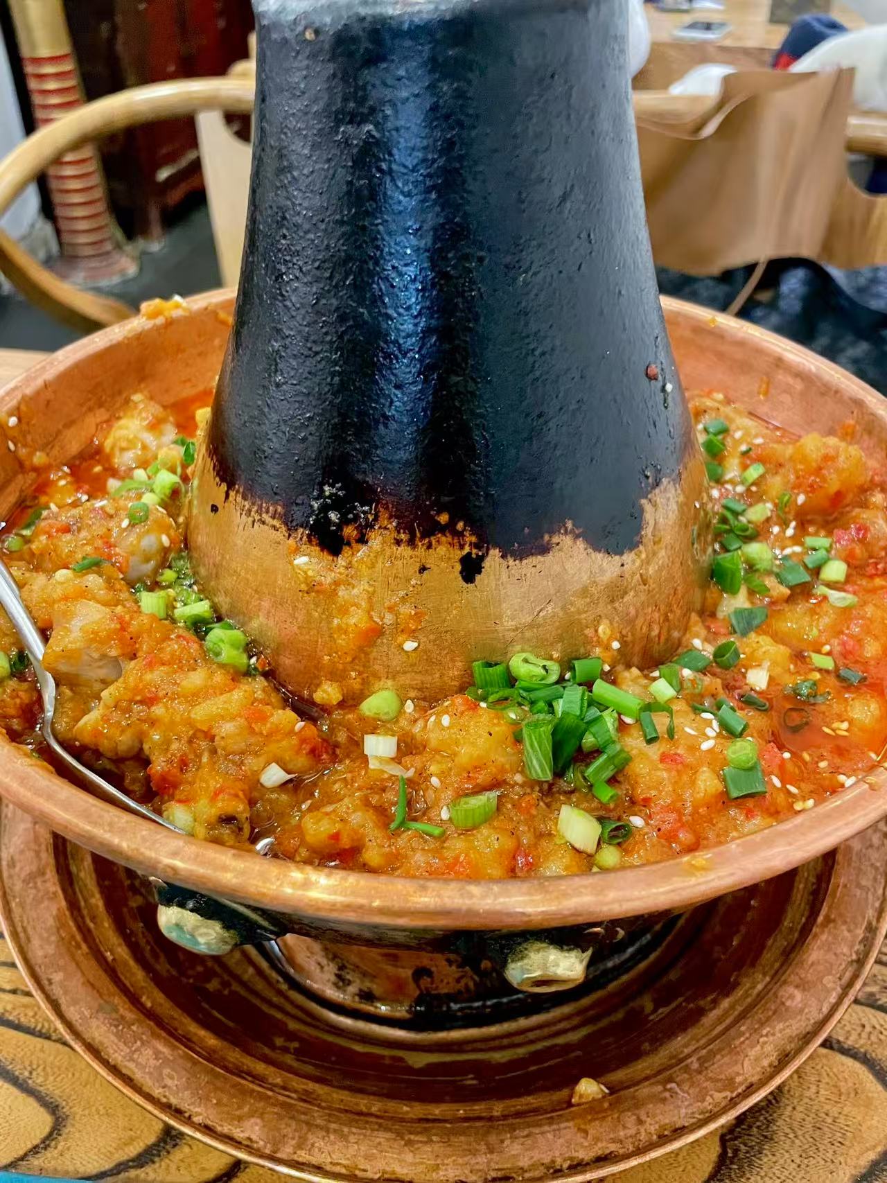 湘彬萱:剁椒鱼头,酸萝卜炒肥肠,尖椒荷包蛋,肉汤泡饭,金丝饼。