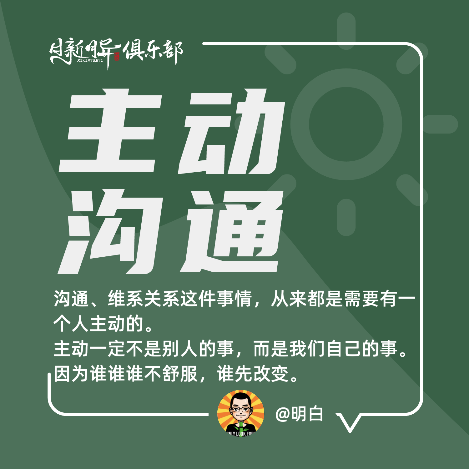 沟通这件事情、维系关系这件事情,从来都是需要有一个人主动的。那主动一定不是别人的事情,而是我们自己的事情。因为谁谁谁不舒服,谁先改变。